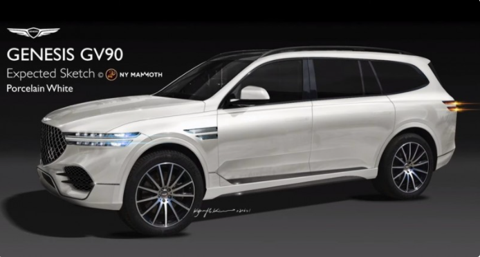 주력 제네시스 GV90은 똑바로 세운 자세와 높은 루프 라인을 가질 것입니다.
